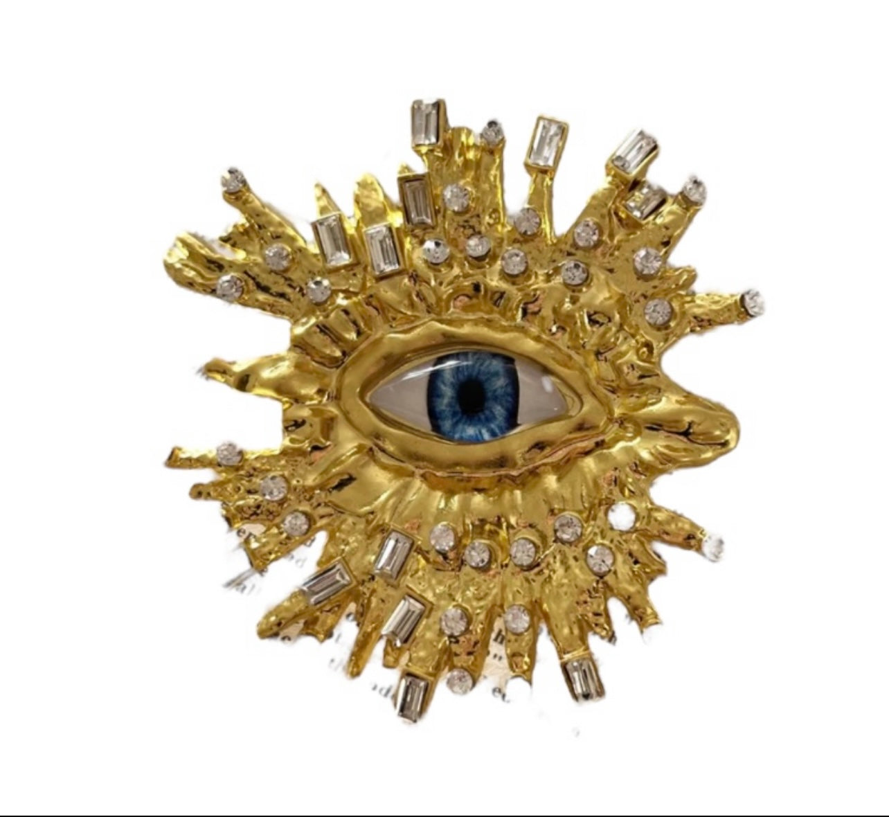 These insanely gorgeous eye earrings and eye ring combination will guarantee a bold statement! Features blue eyes, adorned in crystals, encompassed in gold coloured resin. Length is 6.5cm