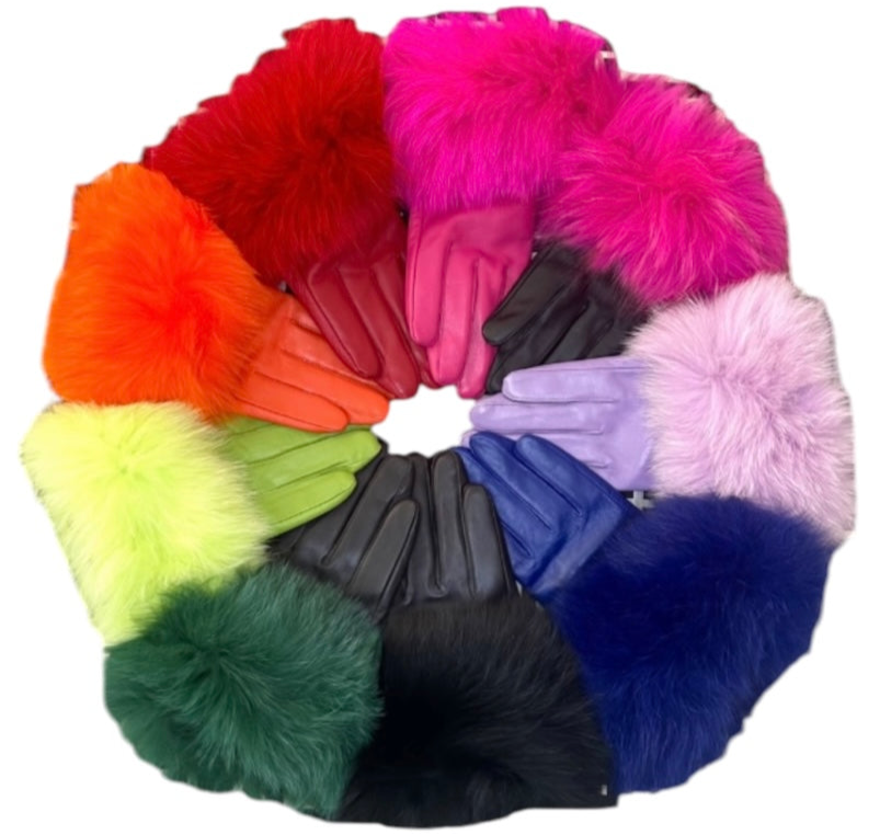 These super fabulous gloves are made with 100% genuine sheepskin leather and a beautiful cuff made of very full and fluffy 100% genuine fox fur. All gloves are lined to ensure warmth through the colder weather. They’re a must have! Gloves are sized as standard.